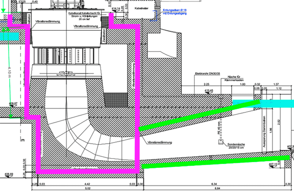 - In Zusammenarbeit mit vielen Spezialisten wurde ein Schallschutzkonzept mit einer kompletten Entkoppelung der Turbinenlagerung entwickelt