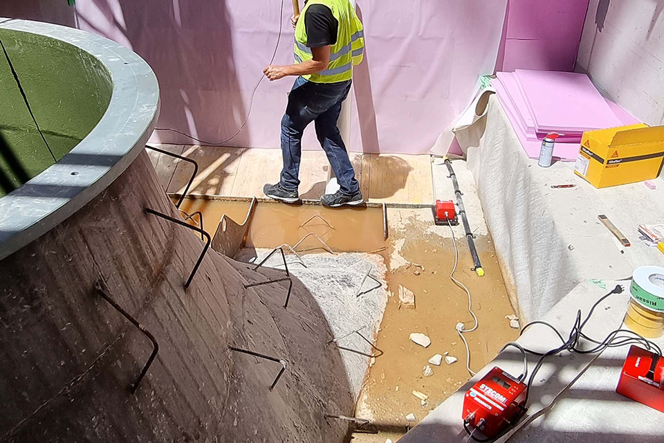 In diesem Fall wurde, in Absprache mit den Planern und der Bauherrschaft, ausschliesslich geschlossenzelliges PUR-Material ISOLDYN® verwendet, da es eine effektive Dämmfunktion, selbst bei Kontakt mit Wasser, gewährleisten kann.