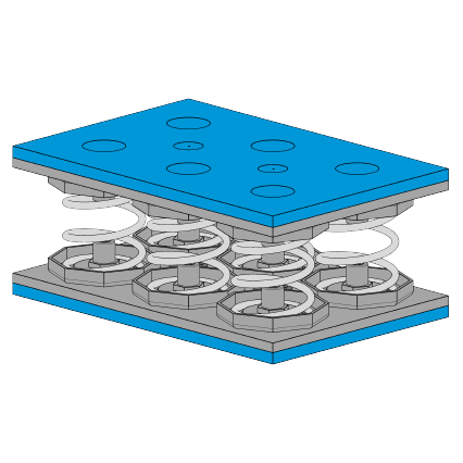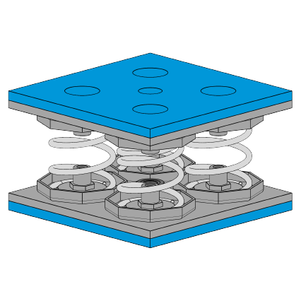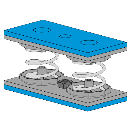Das ISOFED®-SMALL Programm besteht aus Stahlfederisolatoren und wird eingesetzt für die Schwingungs- und Körperschalldämmung von leichten haustechnischen Anlagen und Maschinen wie Wärmepumpen, Waschmaschinen, IT-Datenserver, Pumpen etc.
