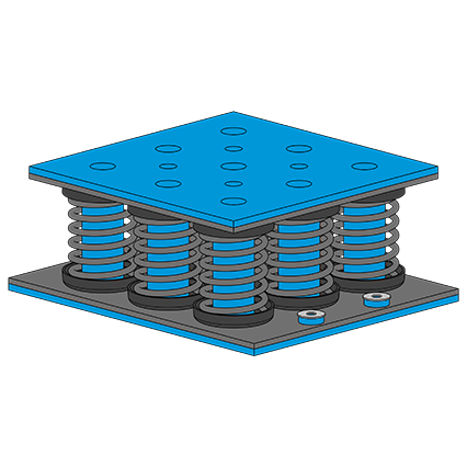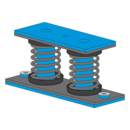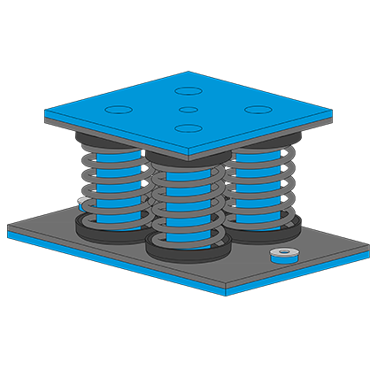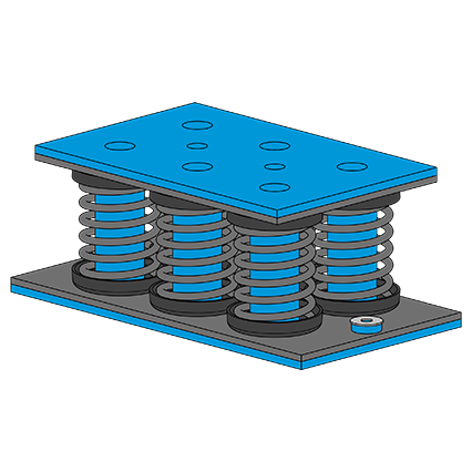 Beim ISOLSPRING®-BIG-DAMP Programm handelt es sich um modular kombinierbare Stahlfederisolatoren für die Schwingungs- und Körperschalldämmung von raumlufttechnischen Anlagen und Maschinen wie Kompaktlüftungsgeräten, Kältemaschinen, Rückkühlern, Wärmepumpen, Notstromaggregaten, IT-Datenservern, Pumpen etc.
