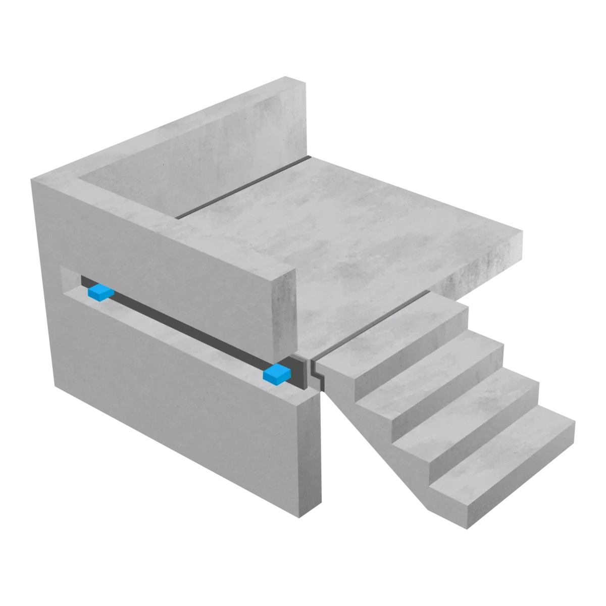 Les appuis de palier et d’escalier réduisent la transmission des bruit de choc de la cage d’escalier vers la structure du bâtiment et améliorent ainsi le confort d’habitation et de travail. Grâce à un découplage élastique, la transmission des vibrations et des bruits d’impact est minimisée, ce qui permet d’atténuer les bruits gênants. Une isolation acoustique efficace est particulièrement importante dans les immeubles locatifs, les immeubles de bureaux et les hôtels.