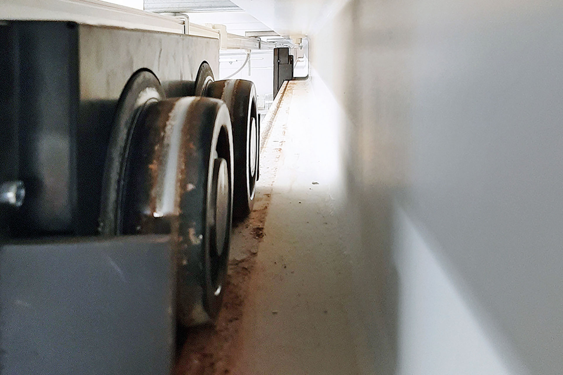 Il convient ici d‘examiner si d‘autres rouleaux ou un nettoyage automatique des surfaces de roulement sont possibles. Dans la mesure du possible, il faudrait toujours renoncer aux galets en acier en cas d‘utilisation mixte du bâtiment.
