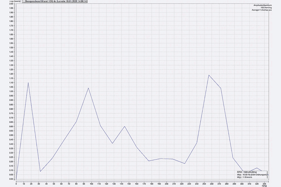 La fréquence propre de la paroi est probablement de 16 Hz, ce qui est toutefois entaché d‘une grande incertitude de mesure en raison des conditions de mesure.