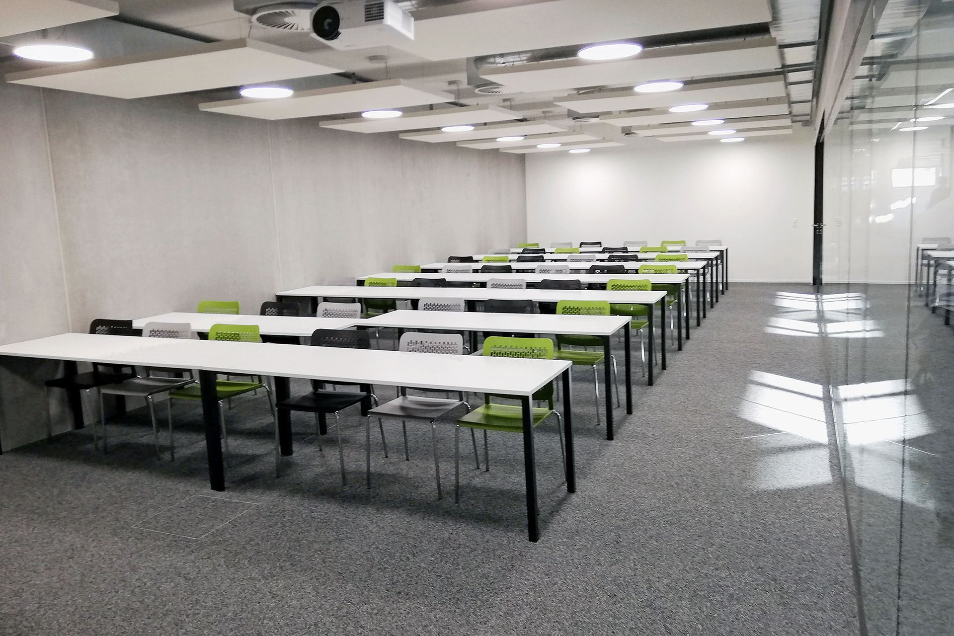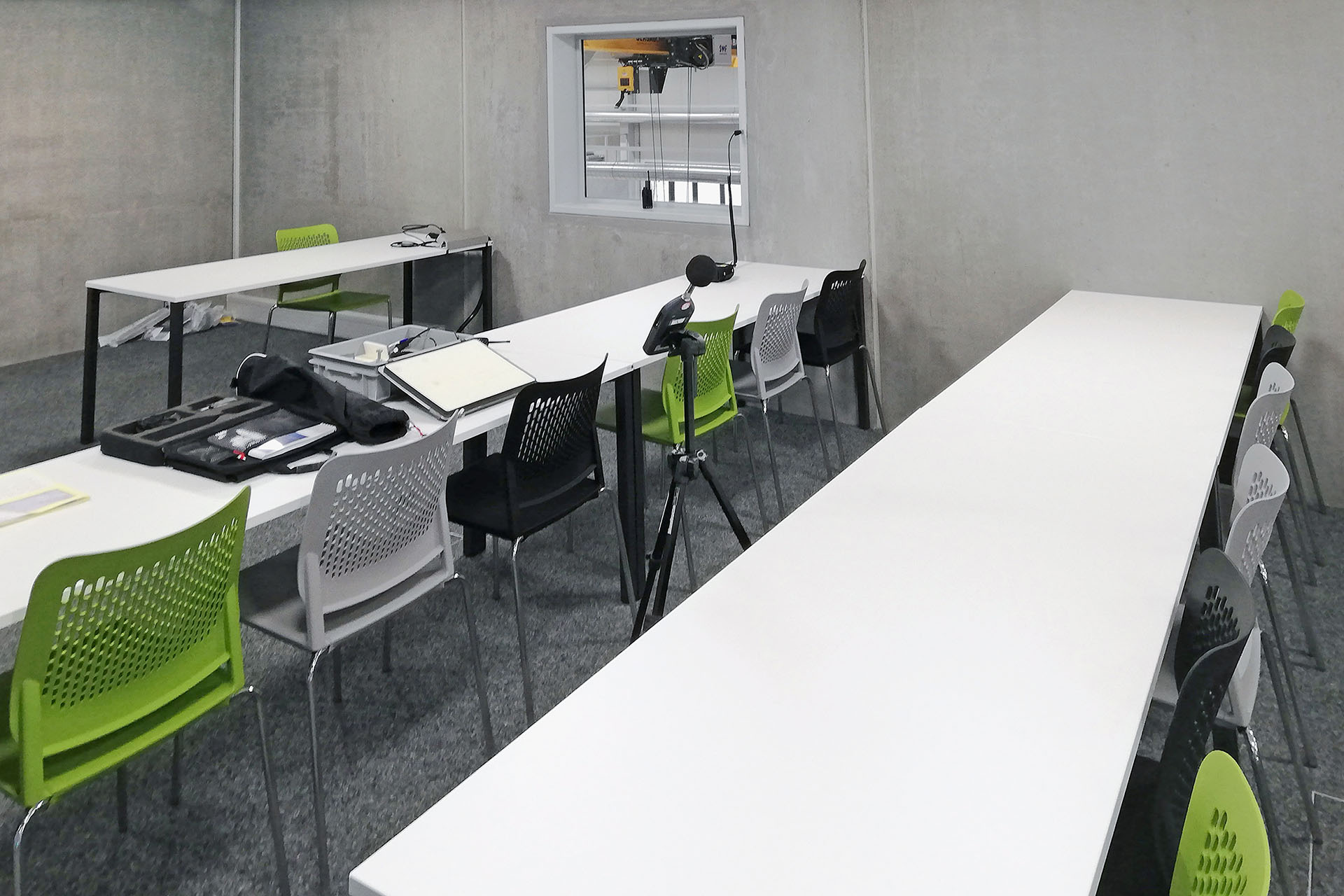 Ce bâtiment n‘est utilisé que par une seule entreprise – il ne s‘agit donc pas d‘une utilisation mixte où d‘autres parties auraient dû être protégées du bruit. Toutefois, dans les directives relatives à l‘art.22 (bruit et vibrations) de l‘ordonnance 3 de la loi sur le travail, le SECO fixe que le niveau d‘exposition au bruit LEX en dB(A) doit être compris entre 40 et 50 dB(A) dans les bureaux et 40 dB(A) dans les salles de cours.