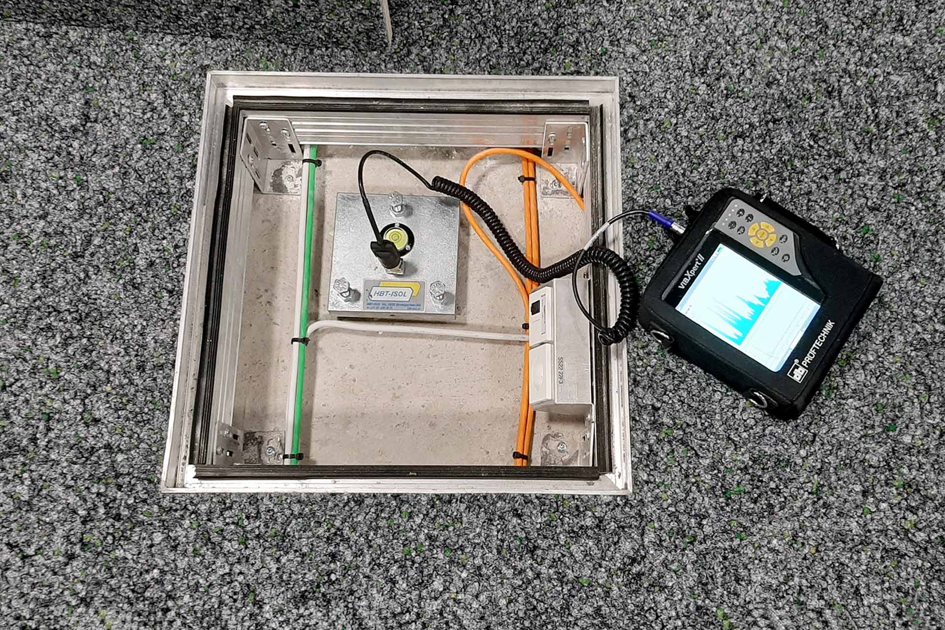 - mesures des vibrations sur le plafond au-dessus du rez-de-chaussée et sur les murs du 1er et du 2e étage