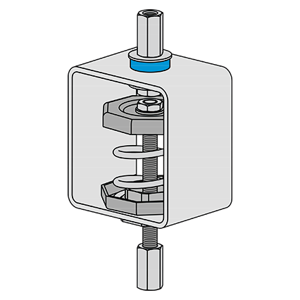 Le système ISOROHR® est utilisé pour les charges de traction. Il est utilisé pour suspendre des constructions métalliques aux plafonds. Le système ISOROHR® est utilisé pour suspendre des ventilateurs, des soufflantes, des climatiseurs et des conduites.